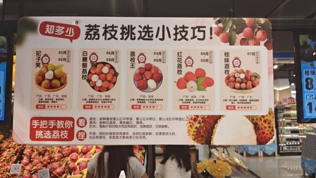 在铜花北路楚鲜果琳店内,店员石女士热情介绍:“桂味荔枝是当下的明星,口感最好,零售活动价8.8元一斤,两斤13元,每天稳稳能卖出100多斤。”